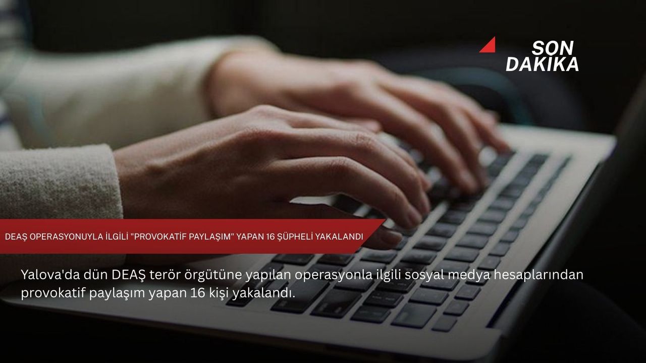 "Yalova'da dün DEAŞ terör örgütüne yapılan operasyon ile ilgili sosyal medya hesaplarından provokatif paylaşım yapan 16 şahıs yakalanmıştır. Sosyal medyada kaynağı belirsiz, manipülatif, olumsuz ve gerçek dışı paylaşımlar dezenformasyon üretmeye yöneliktir. Bu tür provokatif içerikli yayın yapanlar hakkında, Siber Suçlarla Mücadele Daire Başkanlığımız ve Güvenlik Daire Başkanlığımız çalışmalarını sürdürmektedir. Vatandaşlarımızın yalnızca resmi kaynaklardan yapılan bilgilendirmeleri esas almalarını rica ediyoruz."