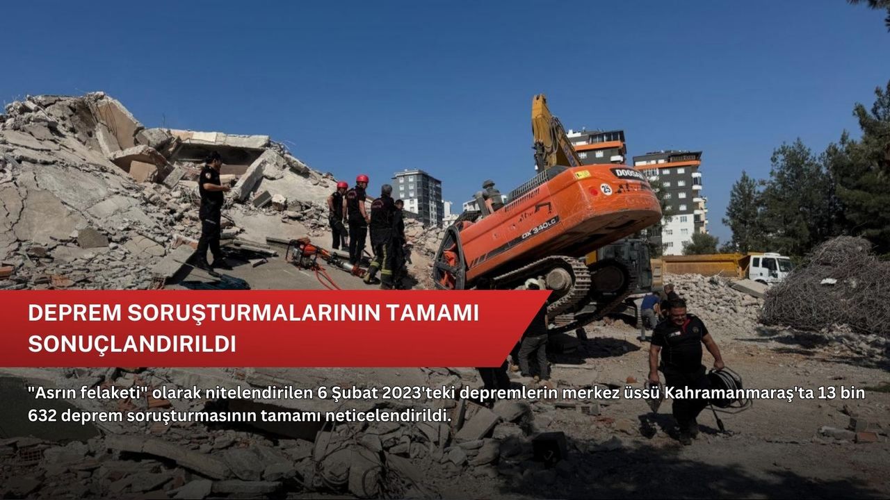 Deprem nedeniyle açılan 13 bin 632 soruşturma dosyasının tamamı sonuçlandırılmıştır. Yapılan adli tahkikat ve incelemeler sonucunda bu dosyalardan 11 bin 665'iyle alakalı birleştirme kararı, 479'uyla alakalı yetkisizlik kararı, 1049'u hakkında takipsizlik kararı verilmiştir. 439 soruşturma dosyasıyla ilgili de şüpheliler hakkında kamu davası açılmıştır."