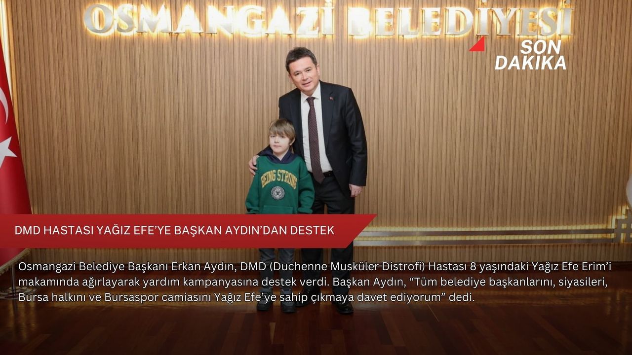 DMD tanısı konulan Yağız Efe Erim’in tedavi olup iyileşmesi için yardım kampanyasına destek olduklarını ifade eden Osmangazi Belediye Başkanı Erkan Aydın, sözlerinde şu ifadeleri kullandı:
