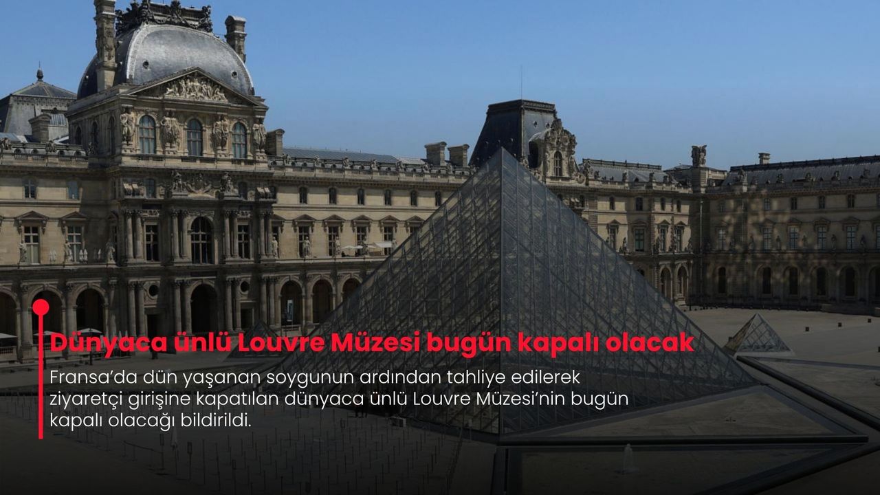 Ulusal basının Louvre Müzesi basın ofisinden yapılan açıklamaya dayandırdığı haberlere göre, dün sabah saatlerinde tarihi eser niteliğinde 9 mücevherin çalındığı soygunun ardından ziyaretçilerin tahliye edildiği Louvre Müzesi bugün halka kapalı olacak.