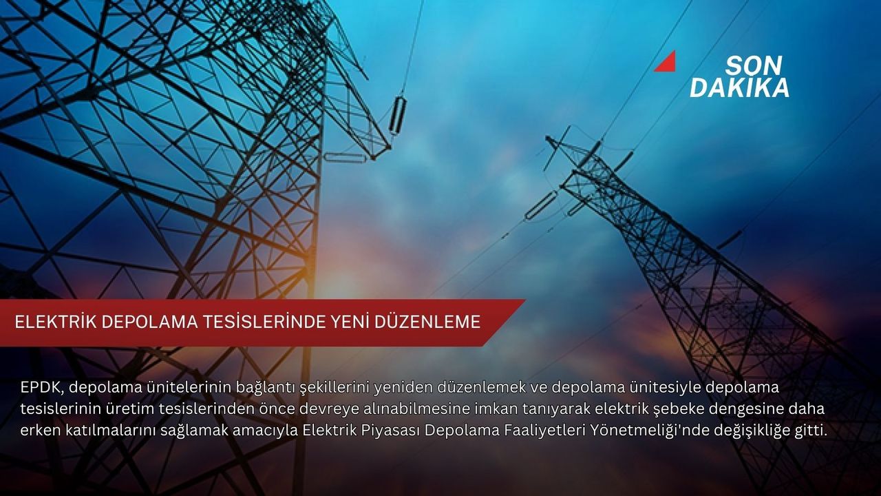 Enerji Piyasası Düzenleme Kurumu'nun (EPDK), Elektrik Piyasasında Depolama Faaliyetleri Yönetmeliğinde Değişiklik Yapılmasına Dair Yönetmeliği, Resmi Gazete'de yayımlandı.