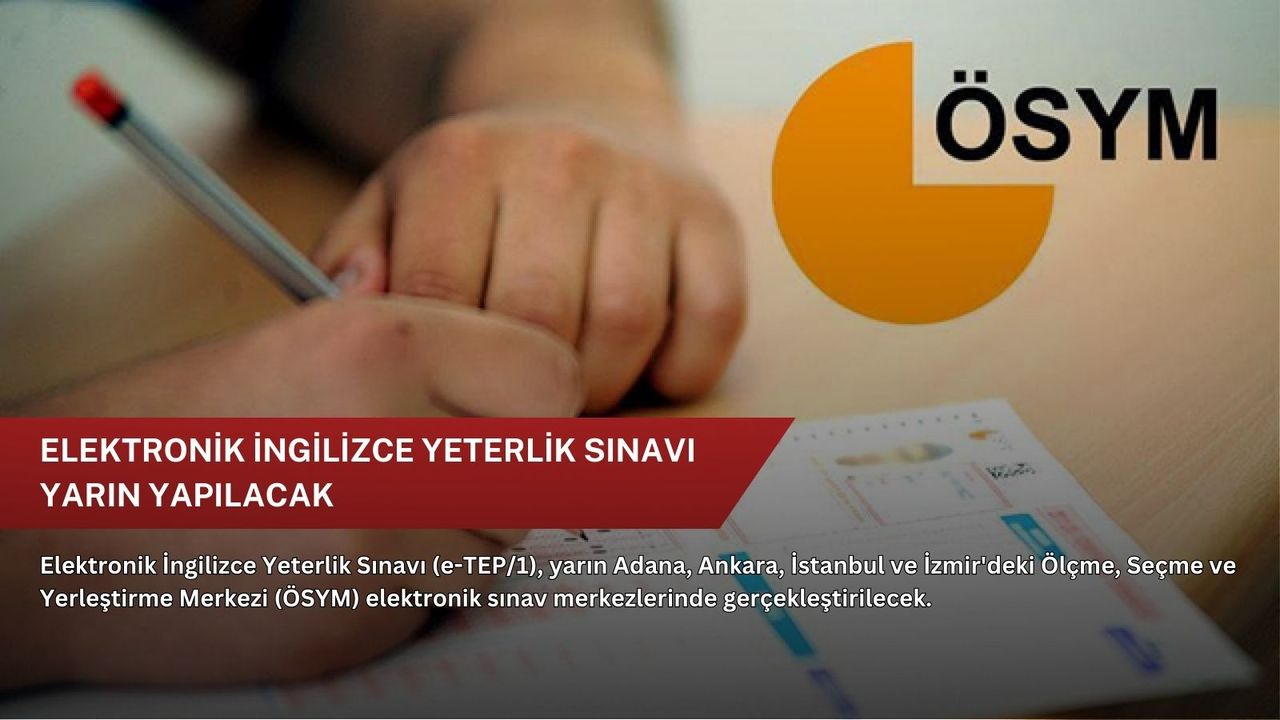 Adana, Ankara, İstanbul ve İzmir'deki ÖSYM elektronik sınav merkezlerinde yapılacak ve iki oturum ile dört bölümden (okuma, dinleme, konuşma ve yazma) oluşan e-TEP, saat 13.45'te başlayacak. Adaylar, saat 13.30'dan sonra sınav binalarına alınmayacak.