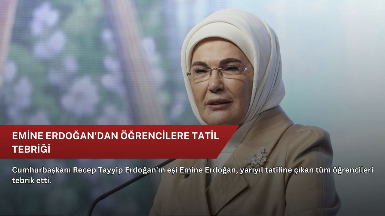 Paylaşımında, eğitim-öğretim yılının ilk yarısını başarıyla tamamlayan tüm öğrencileri kutlayan Emine Erdoğan, "Yarıyıl tatilinin çocuklarımızın dinlenmeleri, kendilerini yeniden keşfetmeleri ve yeni hedeflere hazırlanmaları için vesile olmasını temenni ediyorum. Bilgi ve erdemle güçlenen değerli öğrencilerimizin yolu daima açık olsun." ifadelerini kullandı.