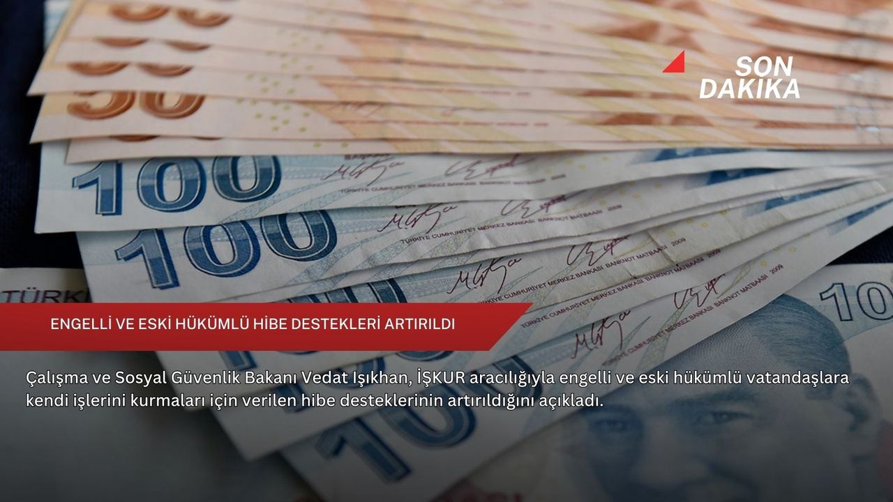 Buna göre, İŞKUR tarafından 2026 yılı 1. dönemi itibarıyla geçerli olmak üzere; engelli vatandaşların kendi işini kurmasını teşvik etmek amacıyla sağlanan hibe desteği 735 bin liraya, eski hükümlü bireylerin iş hayatına yeniden kazandırılması için verilen destek ise 550 bin liraya yükseltildi.