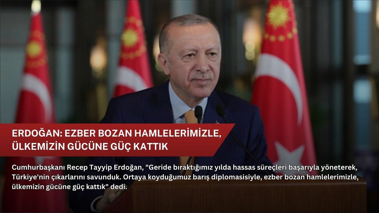 Erdoğan, 2025'te de ekonomiden dış politikaya, enerjiden savunma sanayiine, kültür ve sanattan çevre ve şehirciliğe kadar pek çok alanda önemli çalışmalar yaptıklarını vurgulayarak, "Yeni dönemde büyük reformlara imza atarken, inşallah milletimize sunduğumuz hizmetlerimizi de zirveye çıkartacağız." dedi.