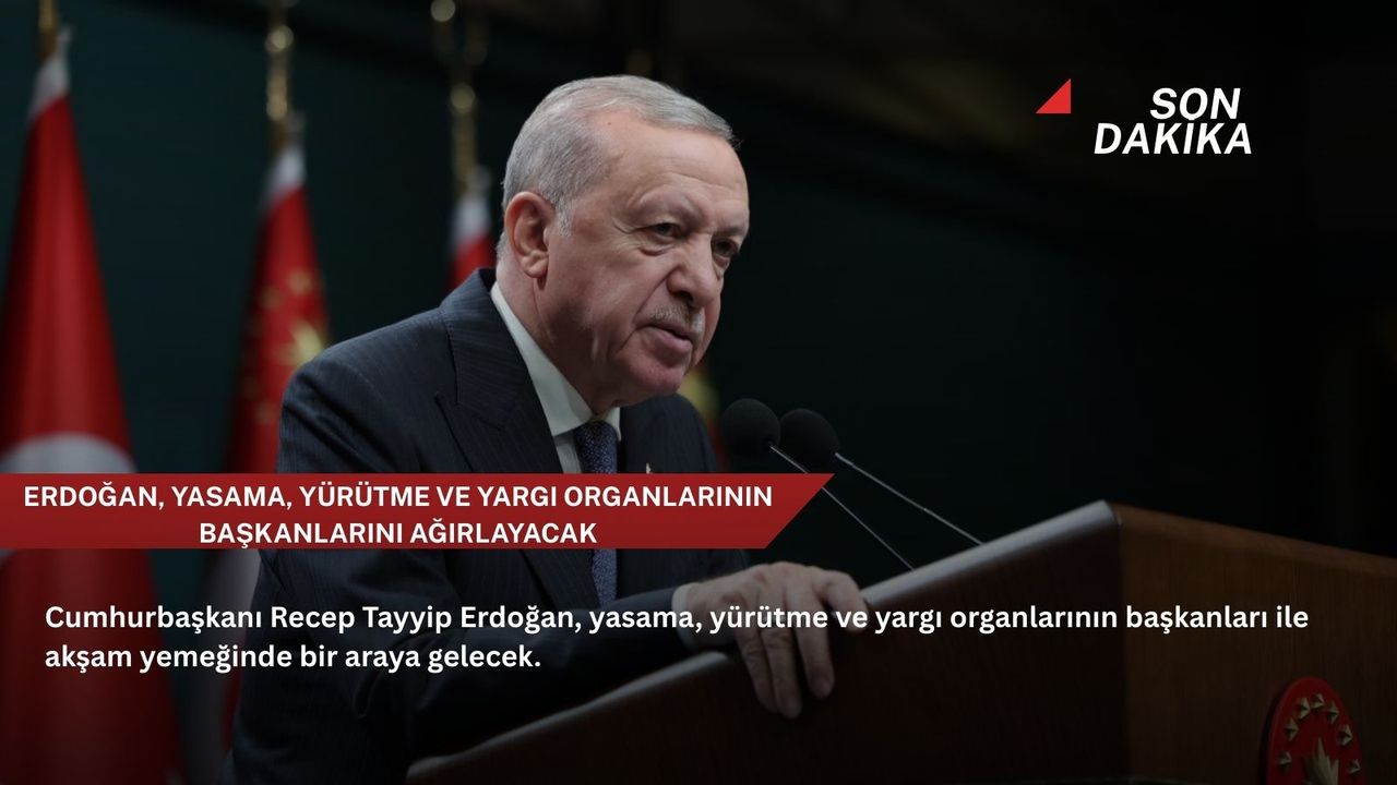 Cumhurbaşkanlığı Külliyesi'nde verilecek akşam yemeğine, TBMM Başkanı Numan Kurtulmuş, Cumhurbaşkanı Yardımcısı Cevdet Yılmaz, Anayasa Mahkemesi Başkanı Kadir Özkaya, Yargıtay Başkanı Ömer Kerkez, Sayıştay Başkanı Metin Yener, Danıştay Başkanı Zeki Yiğit, Uyuşmazlık Mahkemesi Başkanı Rıdvan Güleç, Adalet Bakanı Yılmaz Tunç ve Cumhurbaşkanlığı Devlet Denetleme Kurulu Başkanı Salih Tanrıkulu'nun katılması bekleniyor.