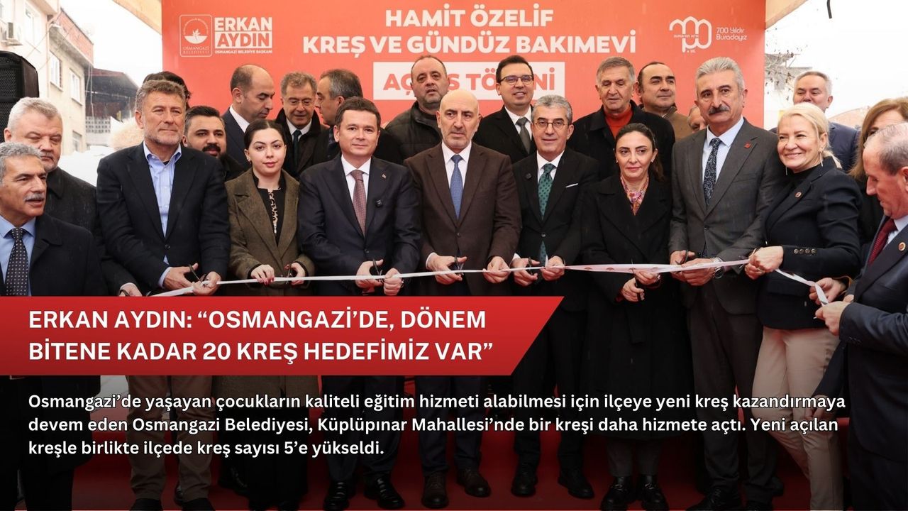 Osmangazi’ye bir kreş daha kazandırdıklarını ifade eden Osmangazi Belediye Başkanı Erkan Aydın, “Grup Başkan Vekilimiz Gökhan Günaydın, bütçe görüşmelerinde verdiği güzel mücadele ve direnişle halkın her kesiminden büyük destek gördü. İnşallah kısa zamanda iktidarımızda, hep birlikte ülkemize bu tür hizmetleri daha da fazla kazandıracağız. Hayırsever iş insanı Ali Özelif’e de özellikle teşekkür ediyorum. Sağ olsun, burayı önerdiğimizde hiç ikiletmedi. ‘Başkanım, bize yer gösterin; ne gerekiyorsa yapmaya hazırız’ dedi. Çok kısa sürede kreşimizin inşaatını tamamladı ve bugün açılışını yapıyoruz. Allah hayırlarını kabul etsin, nicelerini yapmak da nasip olsun.