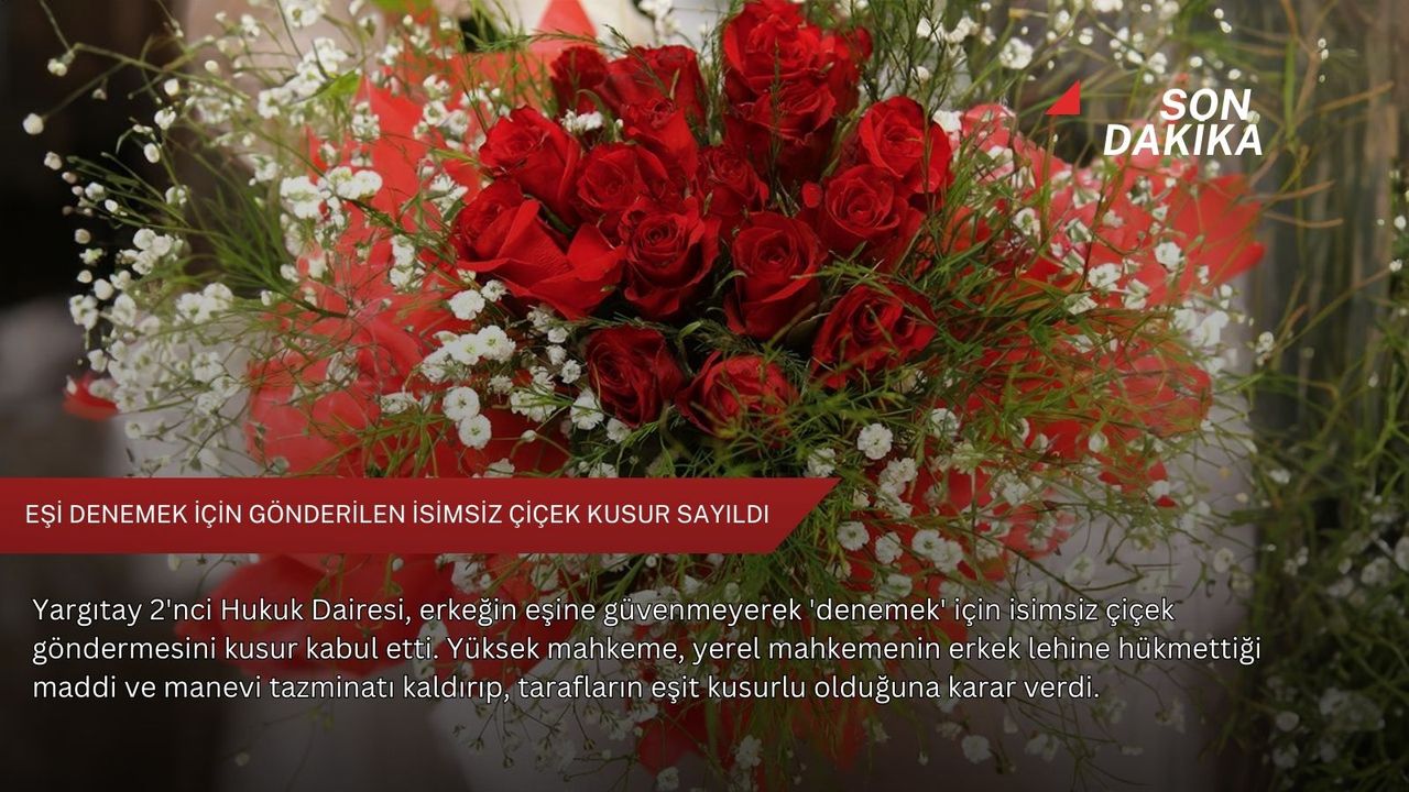 Dosya, temyiz edilmesi üzerine Yargıtay'a taşındı. Yargıtay 2'nci Hukuk Dairesi, erkeğin eşine güvenmeyerek ve kıskanç tavırlar sergileyerek onu denemek amacıyla isimsiz çiçek göndermesinin dosya kapsamı ve tanık beyanlarıyla sabit olduğunu belirtti. Yargıtay kararında, bu davranışın kusur olarak değerlendirilmesi gerektiği vurgulanarak, evlilik birliğinin temelinden sarsılmasına neden olan olaylarda tarafların eşit kusurlu olduklarına hükmedildi. Bu nedenle erkek lehine hükmedilen maddi ve manevi tazminatların koşullarının oluşmadığına karar verildi.
