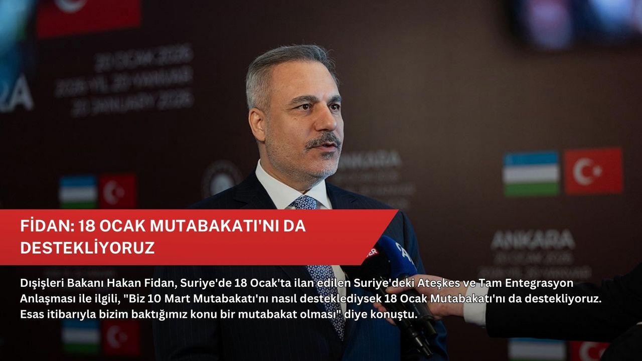 Suriye Cumhurbaşkanı Ahmed Şara tarafından 18 Ocak'ta ilan edilen Suriye'deki Ateşkes ve Tam Entegrasyon Anlaşması'nın ardından Suriye'deki durumu nasıl değerlendirdiklerinin sorulması üzerine Fidan, "Biz 10 Mart Mutabakatı'nı nasıl desteklediysek 18 Ocak Mutabakatı'nı da destekliyoruz. Esas itibarıyla bizim baktığımız konu bir mutabakat olması. Yani Suriye'deki tarafların kendi iradesiyle bir mutabakatı kabullendikten sonra biz Türkiye olarak belli konularda rezervimiz olsa da aslında onu bir kenara bırakıp oluşan ortak mutabakatı desteklemeyi daha öncelikli bir politika olarak tercih ediyoruz. Onun için 18 Ocak'ta tarafların ulaşmış olduğu ve Ahmet Şara'nın da deklare ettiği bu mutabakatın ben kıymetli olduğunu düşünüyorum" değerlendirmesini yaptı.