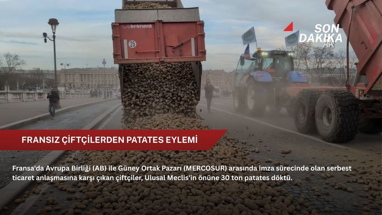 Fransa'daki Patates Üreticileri Ulusal Birliği'nden (UNPT) yapılan açıklamada, Ulusal Meclis'in karşısındaki Concorde Köprüsü'nün önünde patates dağıtıldığı belirtildi.