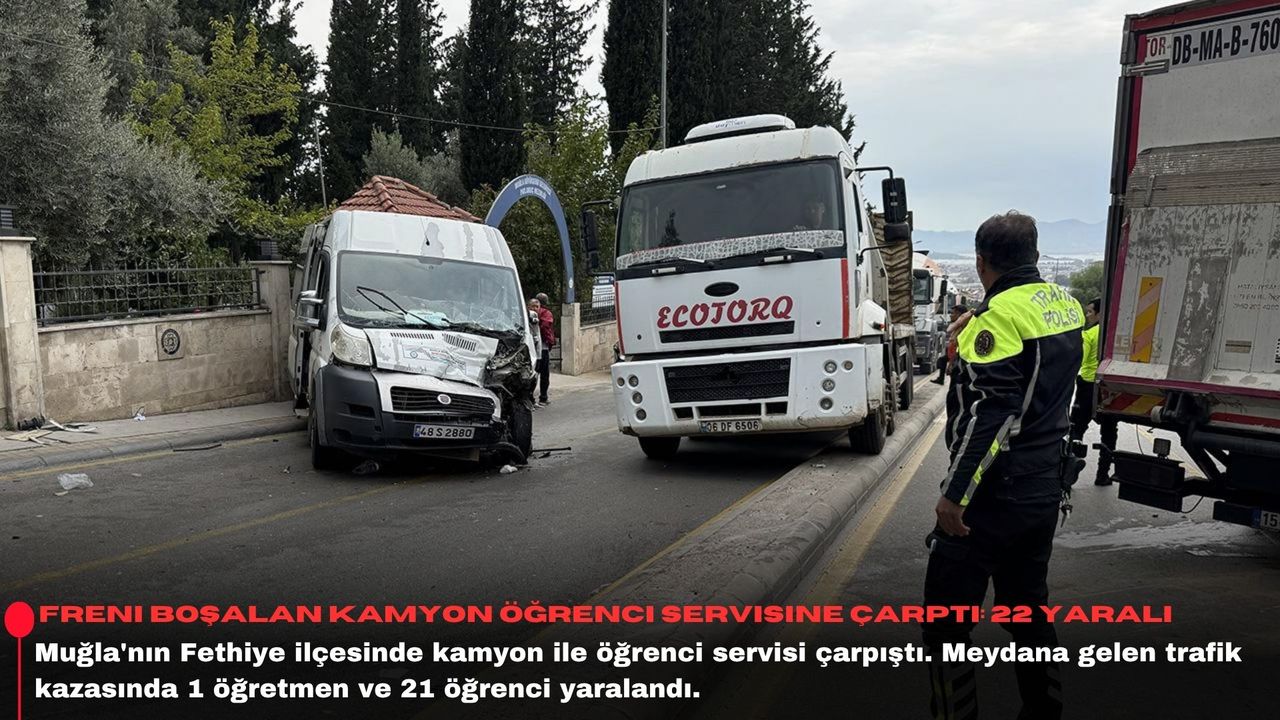 Patlangıç Mahallesi Ölüdeniz Caddesi'nde S.D'nin kullandığı kamyon, ilk belirlemelere göre freninin boşalması sonucu kontrolden çıkarak B.T. idaresindeki öğrenci taşıyan servisle çarpıştı.