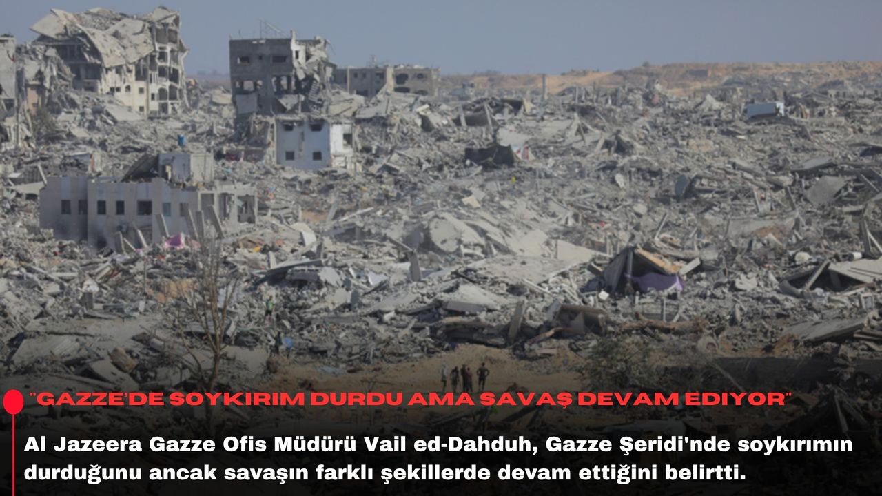Gazze’deki insani krizin neredeyse hiç değişmediğini belirten Dehduh, "İnsani durum fazla değişmedi, değişen tek şey, soykırımın geçici olarak durması" diyerek savaşın farklı biçimlerde sürdüğünü vurguladı.