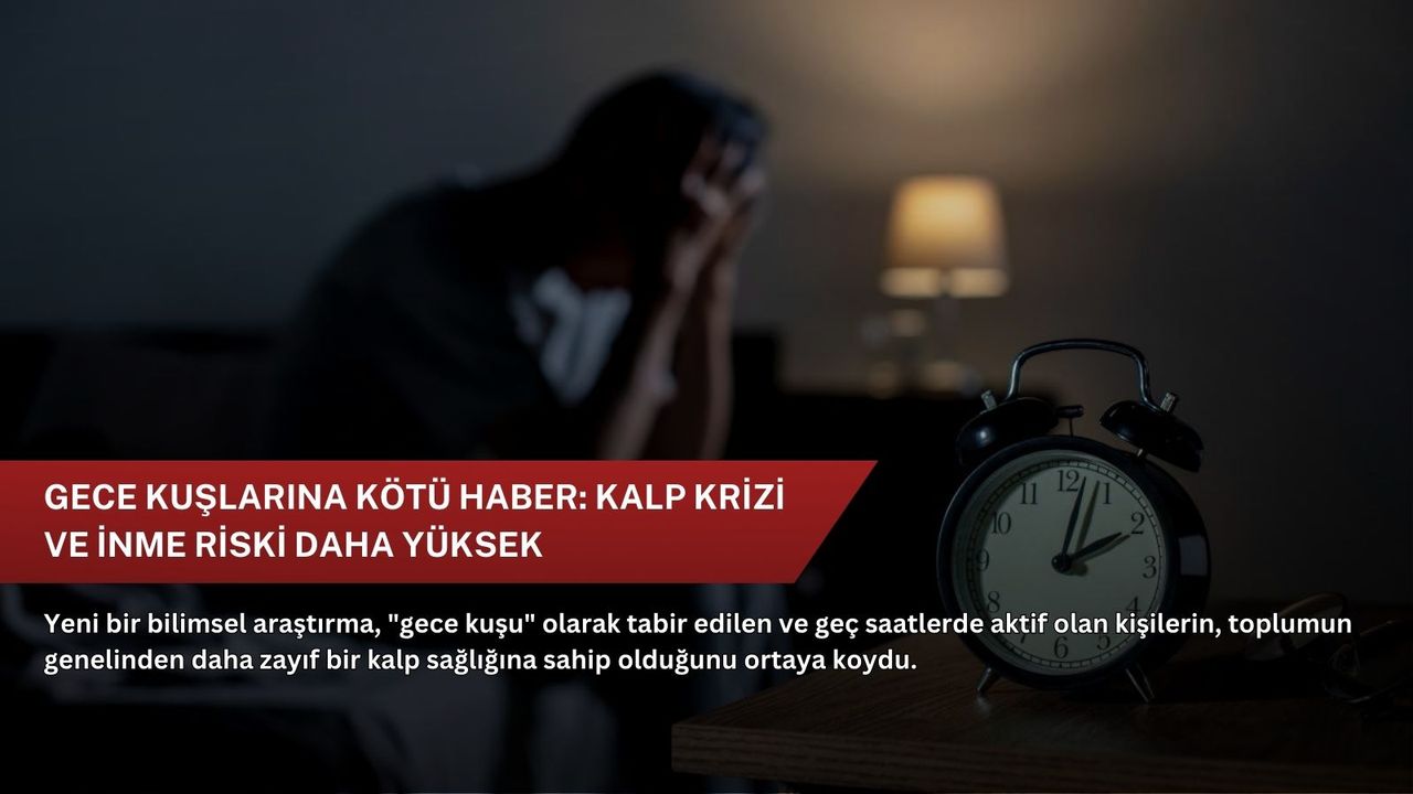 Kendini gece kuşu olarak tanımlayan bireylerin, toplumun ortalama kesimine kıyasla ilk kez kalp krizi veya inme geçirme riskinin yüzde 16 daha fazla olduğu saptandı.