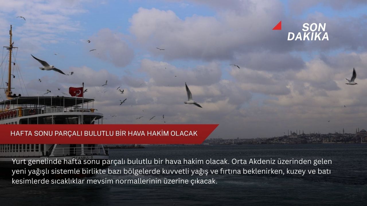 Meteoroloji verilerine göre, yurdun büyük bir bölümünde yağış görülmeyecek, iç ve doğu kesimler parçalı ve az bulutlu geçecek. Ancak Kıyı Ege, Marmara ve Batı Karadeniz, Orta Akdeniz üzerinden gelen yağışlı ve fırtınalı sistemin etkisi altına giriyor.