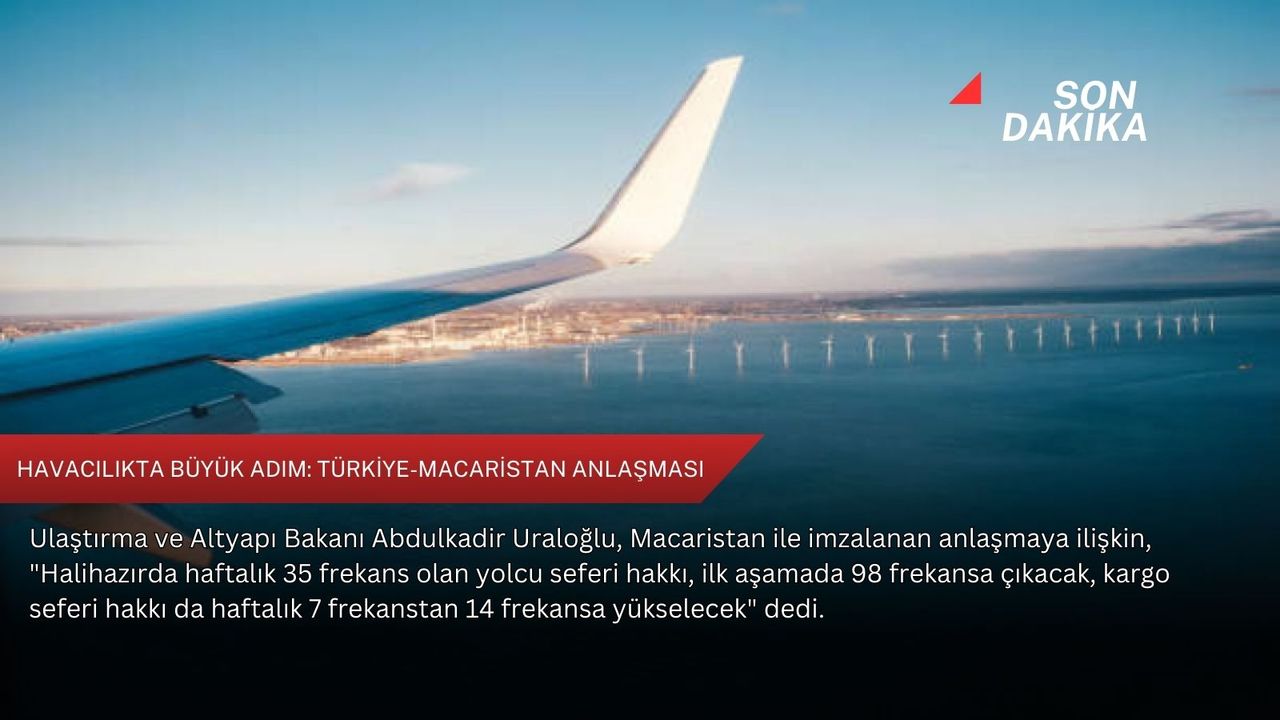 Ulaştırma ve Altyapı Bakanı Abdulkadir Uraloğlu, Türkiye ile Macaristan arasında uzun süredir devam eden hava ulaştırması müzakerelerinin sonuçlandığını belirterek, yeni anlaşmanın iki ülke arasındaki havacılık ilişkilerini ileri bir seviyeye taşıyacağını söyledi.