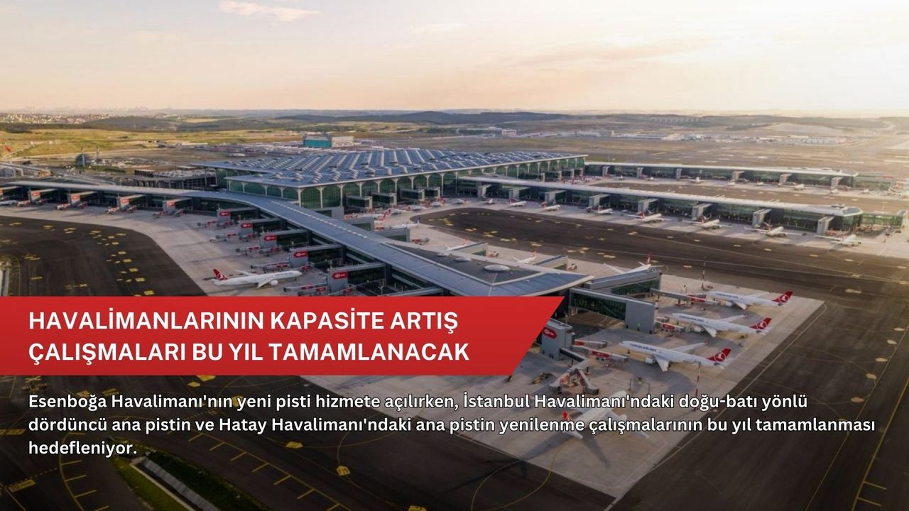 Kahramanmaraş ve Hatay merkezli depremlerde hasar gören Hatay Havalimanı'nda da ana pistin yenilenme çalışmalarının 2026'da tamamlanması planlanıyor.