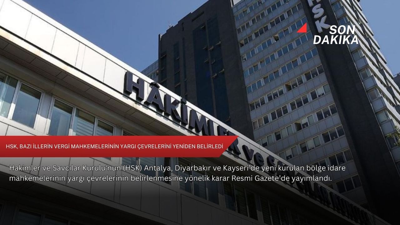 Resmi Gazete'de yayımlanan karara göre, Adalet Bakanlığı Personel Genel Müdürlüğünün yeni kurulan Antalya, Diyarbakır ve Kayseri Bölge İdare Mahkemelerinin yargı çevreleri göz önünde bulundurularak Diyarbakır, Erzurum, Malatya ve Van Vergi Mahkemelerinin yargı çevrelerinin yeniden belirlenmesine ilişkin teklifi HSK Genel Kurulunca görüşüldü.