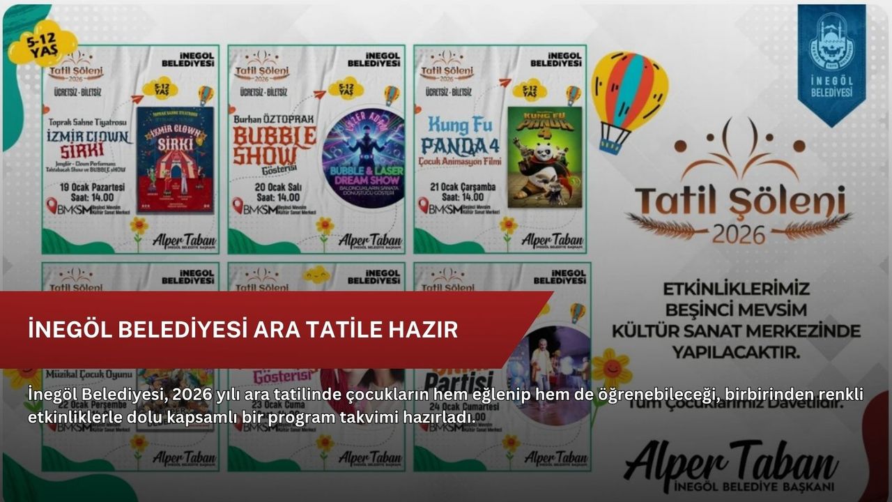 İnegöl Belediye Başkanı Alper Taban, ara tatilde çocukların keyifli ve verimli vakit geçirmesini önemsediklerini belirterek, “Çocuklarımızın yüzünü güldürecek, hayal dünyalarını geliştirecek ve güzel anılar biriktirecekleri bir tatil programı hazırladık. Tüm çocuklarımızı Tatil Şöleni 2026 etkinliklerimize davet ediyorum.” dedi.