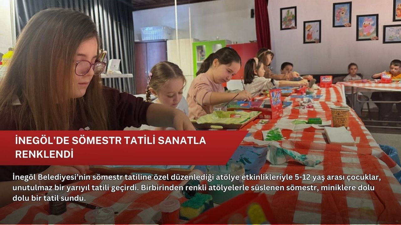 Sömestr tatili süresince düzenlenen etkinlikler kapsamında her gün farklı bir atölye çalışması olmak üzere; 3D Tasarım Atölyesi, Çocuk Çömlek Atölyesi, Tepsi Boyama Atölyesi, Bez Çanta Baskı ile Boyama Atölyesi ve Eva’dan Çiçek Yapımı Atölyesi gerçekleştirildi. Farklı yaş gruplarına yönelik yapılan atölyeler İnegöl Belediyesi Kültür Sanat ve Gençlik Merkezi ile İnegöl Belediyesi Nöbetçi Kitaphanesinde yapıldı. Atölyeler ilginin yoğun olması ve daha fazla çocuğun faydalanabilmesi adına 2-3 seans halinde düzenlendi.