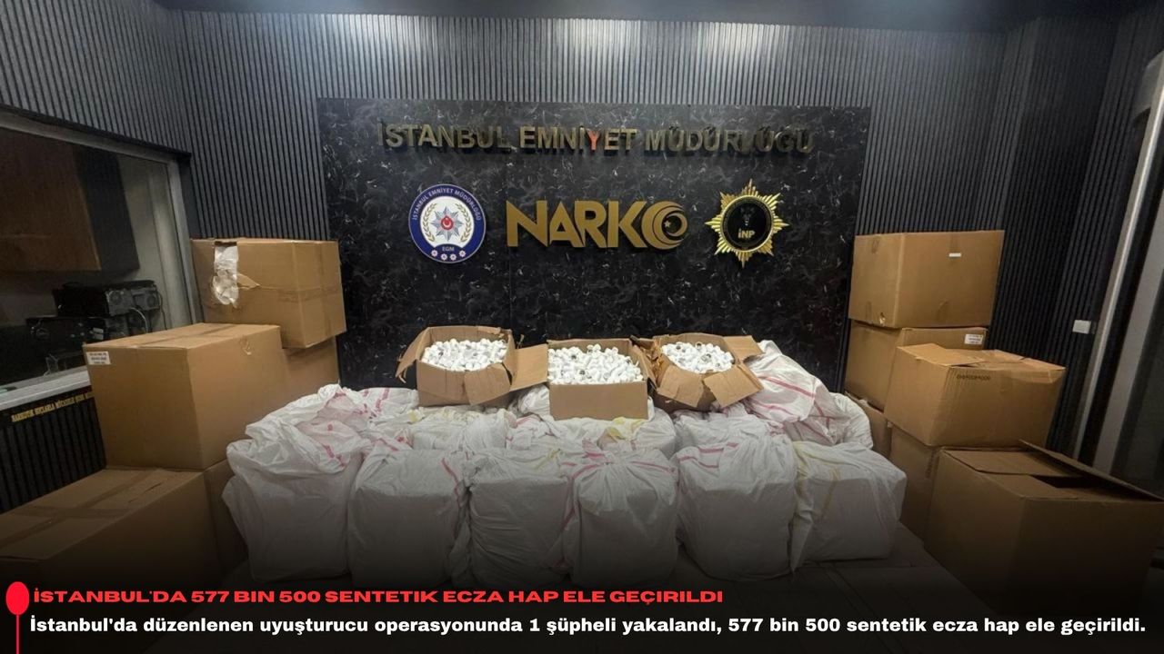 Operasyonda 1 şüpheli yakalandı, adreste yapılan aramada 577 bin 500 sentetik ecza hap ele geçirildi.