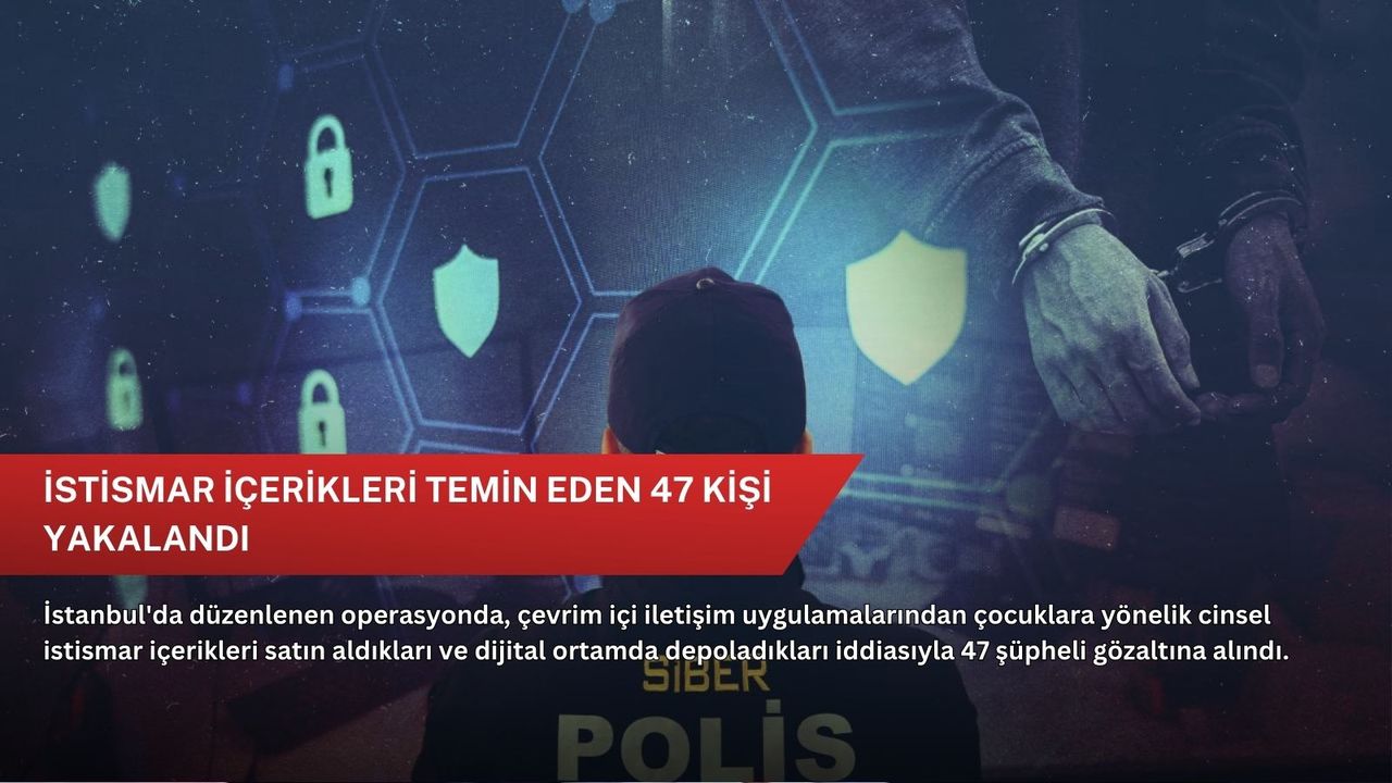 Dijital materyalleri üzerinde yapılan incelemede suça konu içerik tespit edilen 47 şüpheli, düzenlenen operasyonla yakalandı.
