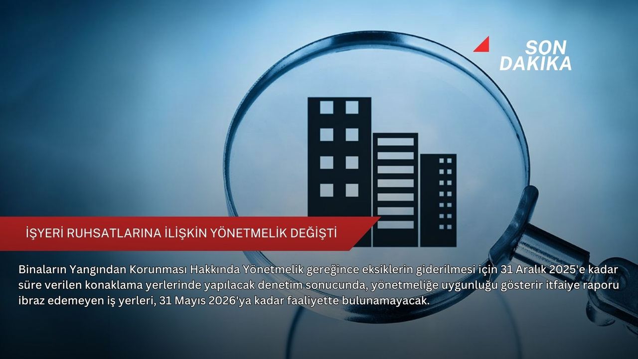Buna göre, Binaların Yangından Korunması Hakkında Yönetmelik gereğince, malzeme temini için süreç gerektiren eksikliklerin giderilmesi için 31 Aralık 2025'e kadar süre verilmiş olan konaklama yerlerinde, yetkili idarelerce denetim yapılacak ve bu denetimler sonucunda binaların Yangından Korunması Hakkında Yönetmeliğe uygunluğu gösterir itfaiye raporunun ibraz edilememesi halinde bu iş yerleri, 31 Mayıs 2026'ya kadar faaliyetten men edilecek.