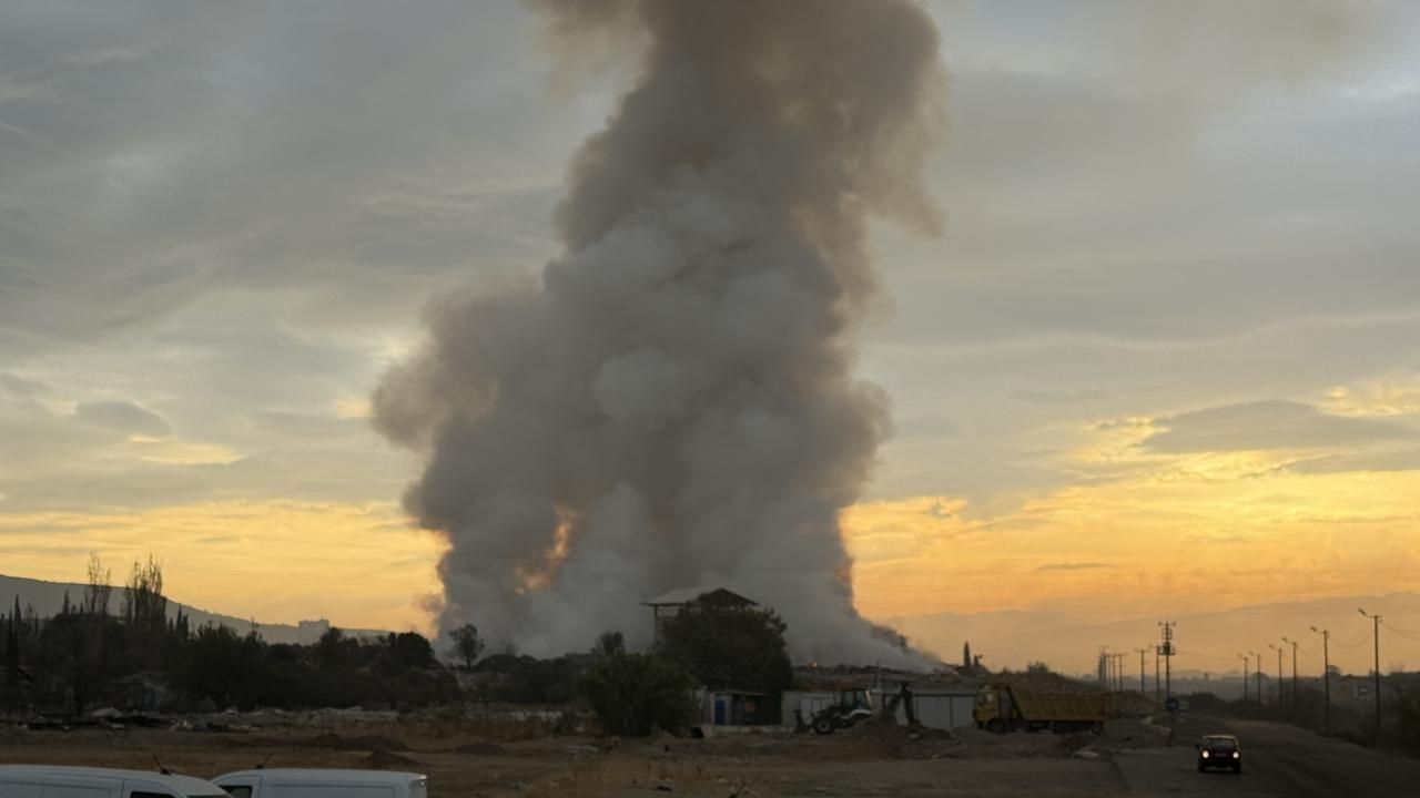 Yangın nedeniyle çıkan duman ve kötü koku ilçe merkezine kadar ulaştı.
