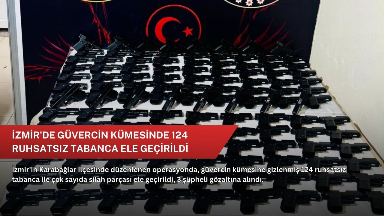 Aramada, kümese gizlenmiş 124 ruhsatsız tabanca, 76 tabanca sürgüsü, 28 namlu ile 39 icra mili ve yayı bulundu.