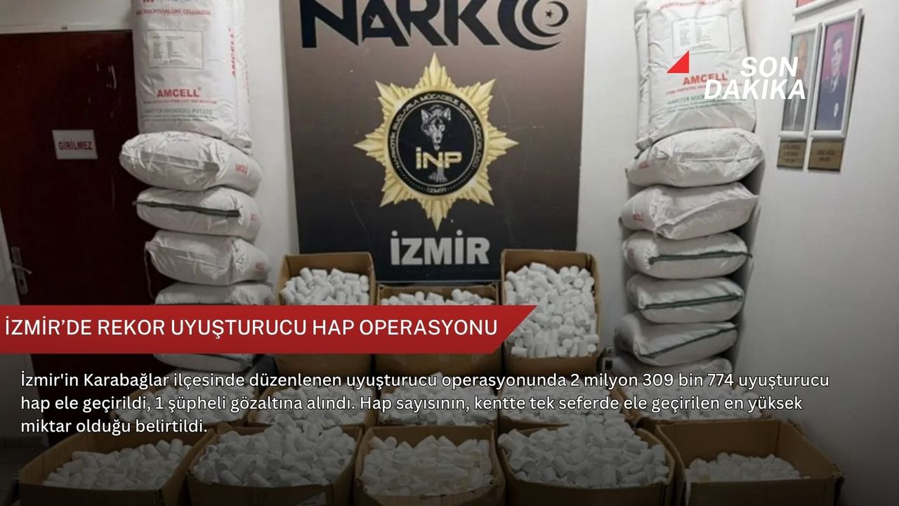 Operasyonda ele geçirilen uyuşturucu hap sayısının, İzmir'de tek seferde ele geçirilen en yüksek hap miktarı olduğu belirtildi.
