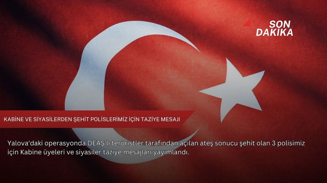 Cumhurbaşkanı Yardımcısı Cevdet Yılmaz, mesajında, "Yalova’da terör örgütü DEAŞ’a yönelik operasyonda şehit olan kahraman polislerimize Allah’tan rahmet, yaralı polislerimize ve bekçimize acil şifalar diliyorum. Şehitlerimizin ailelerine, Emniyet Teşkilatımıza ve aziz milletimize sabır ve başsağlığı diliyorum." dedi.