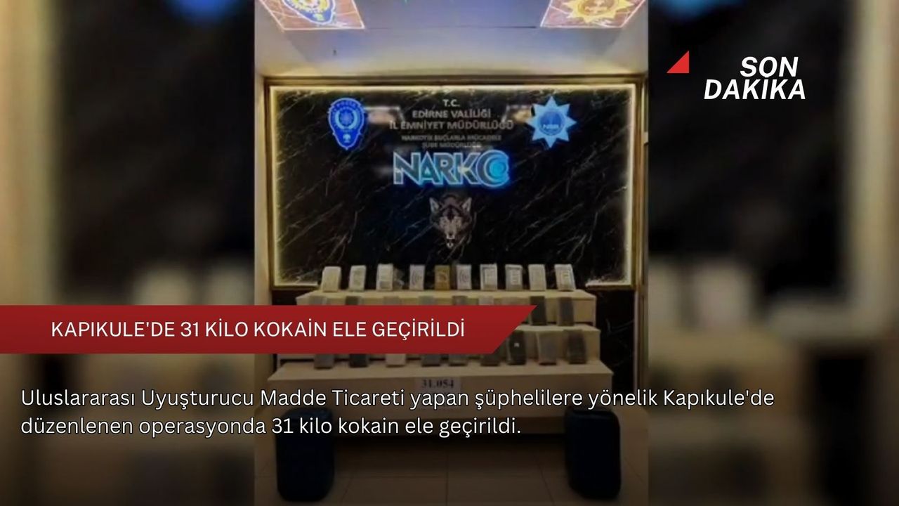 Uluslararası uyuşturucu madde ticareti yapan şüphelilere yönelik gerçekleştirilen operasyonda, 31 kilogram kokain ele geçirildi. Operasyonda, şüpheliler E.E. ve T.Ç. yakalandı.