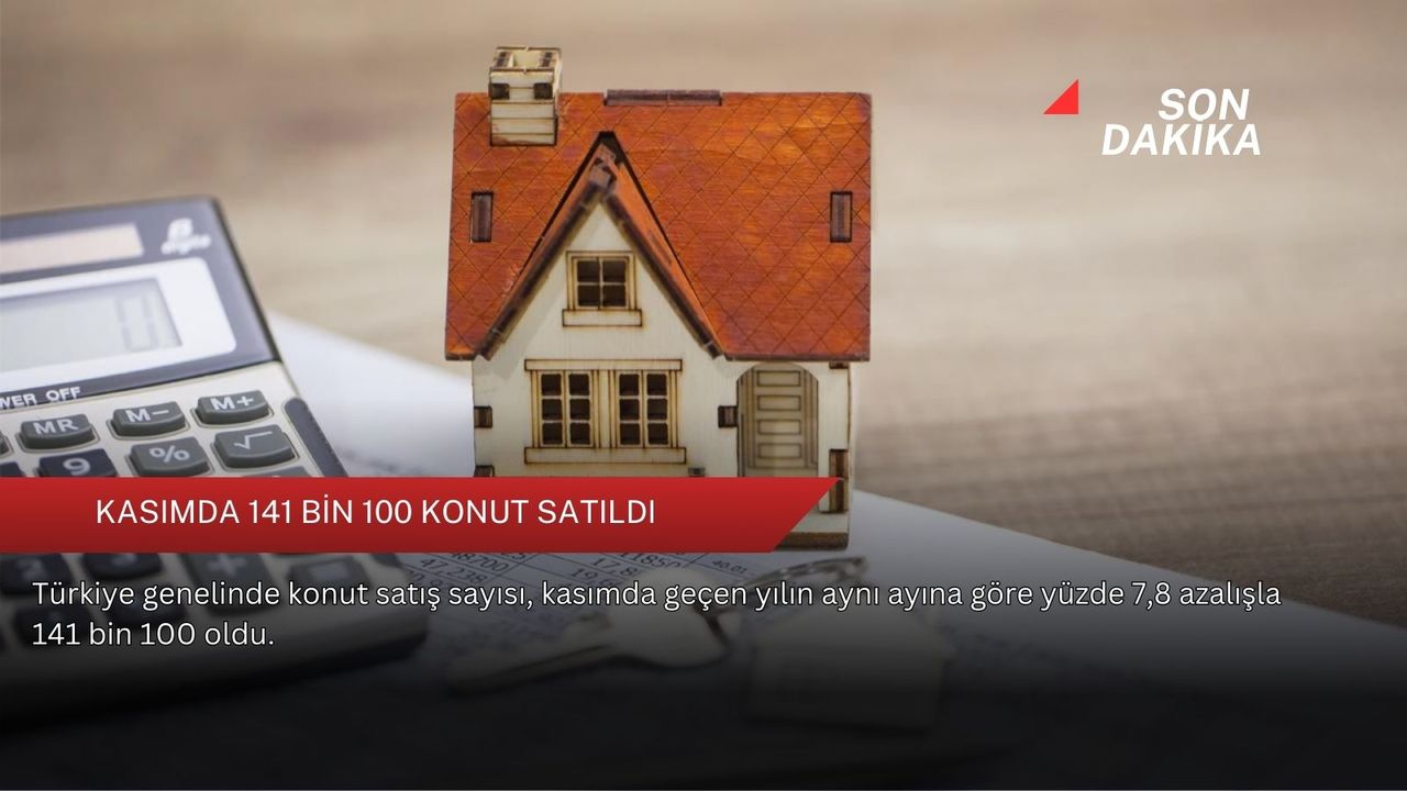 Buna göre, Türkiye genelinde konut satış sayısı, kasımda geçen yılın aynı ayına kıyasla yüzde 7,8 azalarak 141 bin 100'e geriledi.