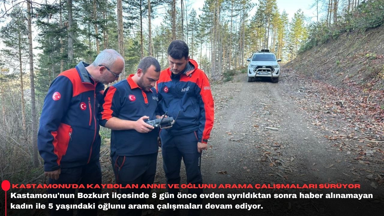 İlçe merkezinde 2 Kasım'da evden ayrılan Huriye Helvacı ile oğlu Osman hakkında yakınlarının kayıp ihbarında bulunmasının ardından anne ve oğlunun bulunması için emniyet, jandarma ve İl Afet ve Acil Durum Müdürlüğü (AFAD) ekipleri ile Ulusal Medikal Kurtarma Ekibi (UMKE) personeli çalışma yürütüyor.