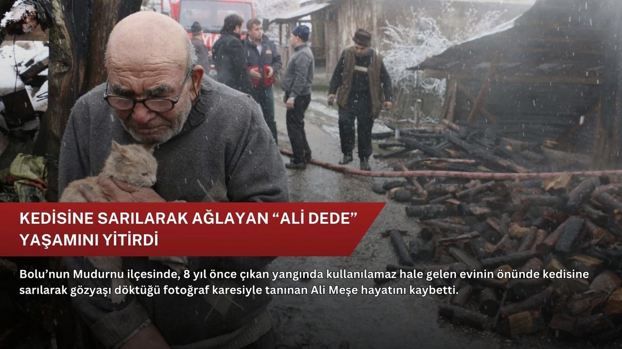 Ali Meşe’nin eşi, engelli oğlu ve kedisiyle yaşadığı ahşap ev yanarak kullanılamaz hale geldi. Ali Meşe'nin yangının ardından kucağındaki kedisiyle, yanan evin önünde çekilen fotoğrafı herkesi derinden etkiledi.