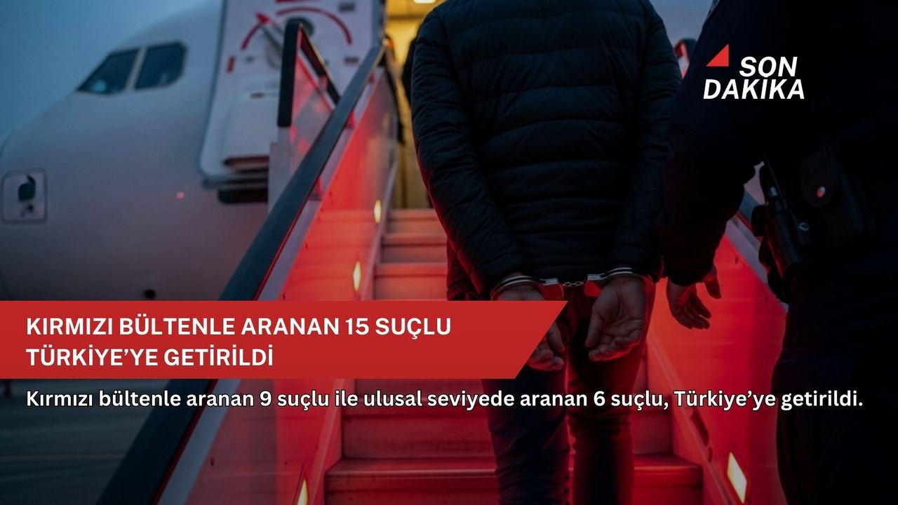 Suç örgütleriyle mücadele, yurt içinde ve yurt dışında kararlılıkla devam ediyor. Kırmızı bültenle aranan 9, ulusal seviyede aranan 6 suçlu daha Türkiye'ye getirildi.
