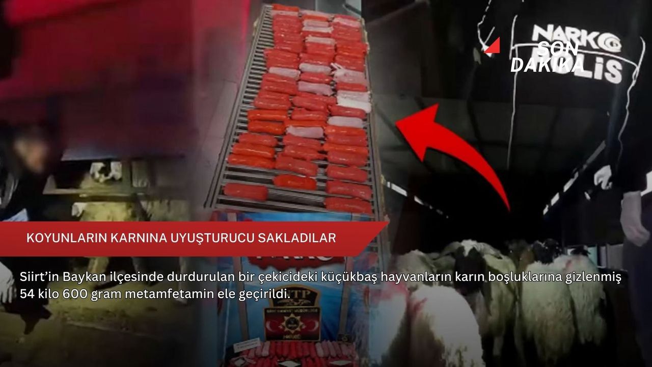 Siirt ve Hakkari Emniyet Müdürlüklerine bağlı narkotik ve istihbarat ekiplerinin ortak operasyonunda, çekicinin dorsesinde bulunan bazı hayvanların karın bölgelerinde dikiş izleri fark edildi.