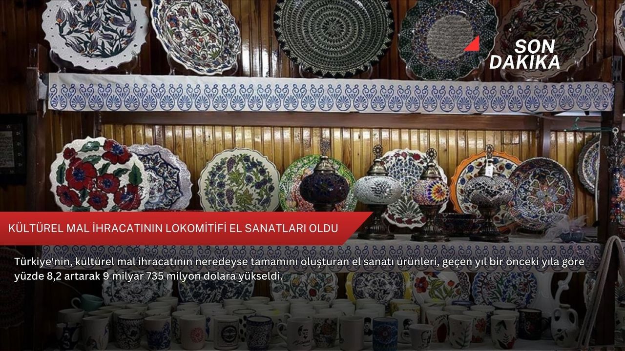 Türkiye İstatistik Kurumu (TÜİK) verilerine göre, görsel sanatlar, mimarlık, tasarım ve el sanatları ürünleri gibi kalemlerden oluşan Türkiye'nin kültürel mal ihracatının toplam mal ihracatı içindeki payı, geçen yıl yüzde 4,2 olarak kayıtlara geçti.
