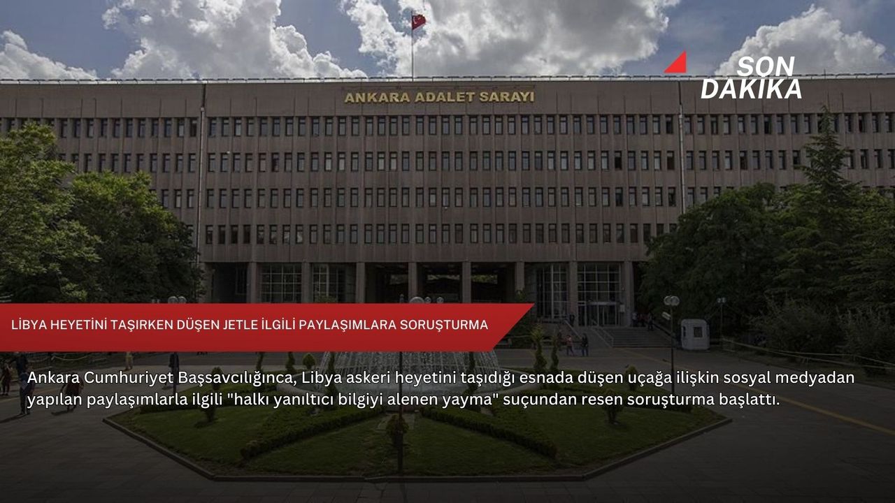 Başsavcılık, Esenboğa Havalimanı'ndan kalkan ve Libya Heyetini taşıyan uçağın Ankara'nın Haymana ilçesi civarında düşmesine ilişkin sosyal medyada gerçeğe aykırı bilgi ve veri paylaşımı yapılmasının tespit edilmesi üzerine resen soruşturma başlattı.