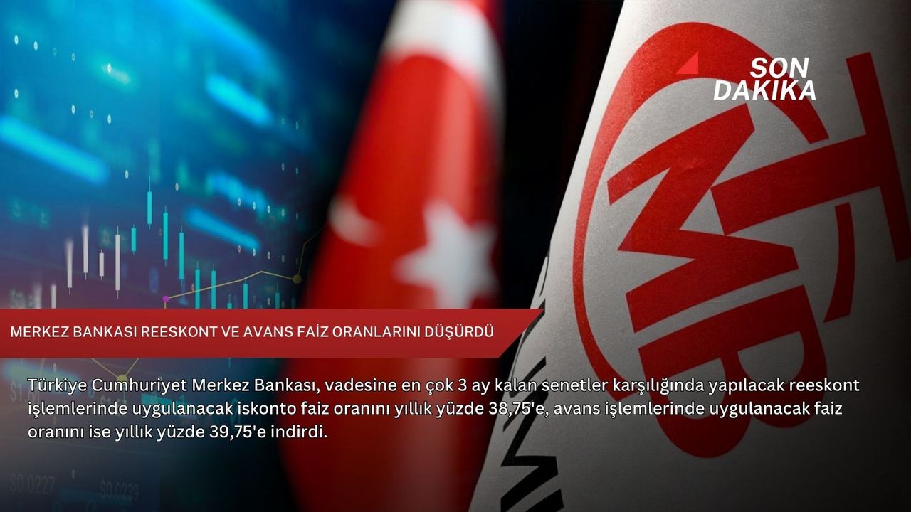 Reeskont işlemlerinde iskonto faiz oranı yüzde 41,25, avans işlemlerinde faiz oranı ise yüzde 42,25 düzeyindeydi.