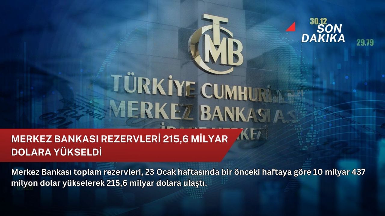 Böylece Merkez Bankasının toplam rezervleri, 23 Ocak haftasında bir önceki haftaya göre 10 milyar 437 milyon dolar artışla 205 milyar 177 milyon dolardan 215 milyar 614 milyon dolara yükseldi.