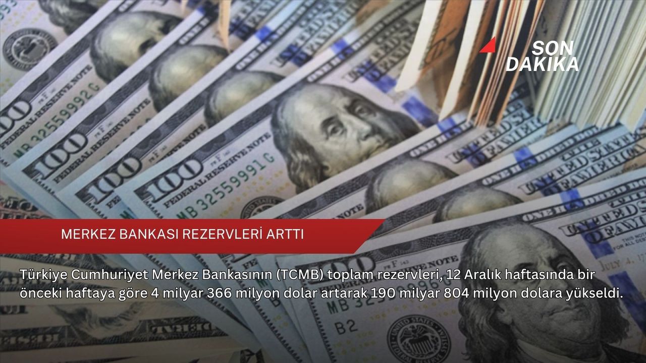 Böylece Merkez Bankasının toplam rezervleri, 12 Aralık haftasında bir önceki haftaya göre 4 milyar 366 milyon dolar artarak 190 milyar 804 milyon dolara çıktı.