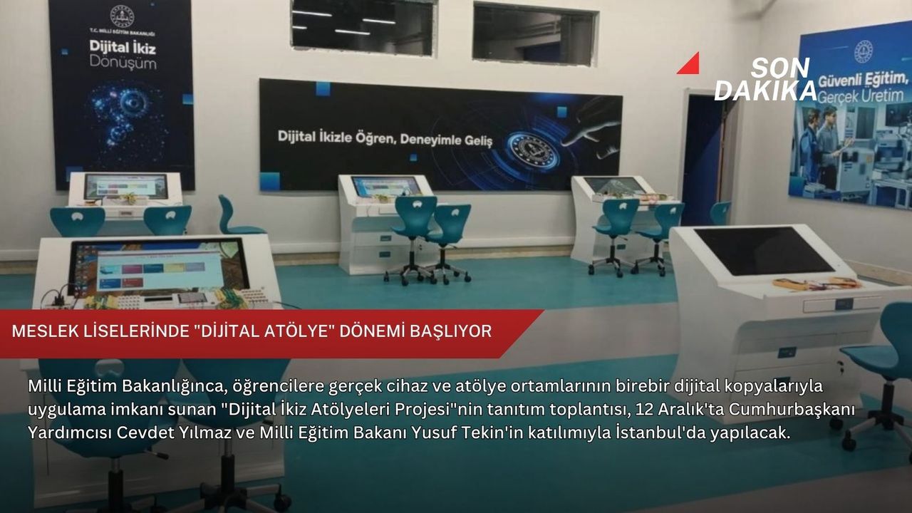 Dijital İkiz Atölyeleri Projesi'nin tanıtım toplantısı, Cumhurbaşkanı Yardımcısı Yılmaz ve Milli Eğitim Bakanı Tekin'in katılımıyla 12 Aralık'ta, dönüşümü tamamlanan Haydarpaşa Mesleki ve Teknik Anadolu Lisesinde gerçekleştirilerek atölyenin açılışı yapılacak.