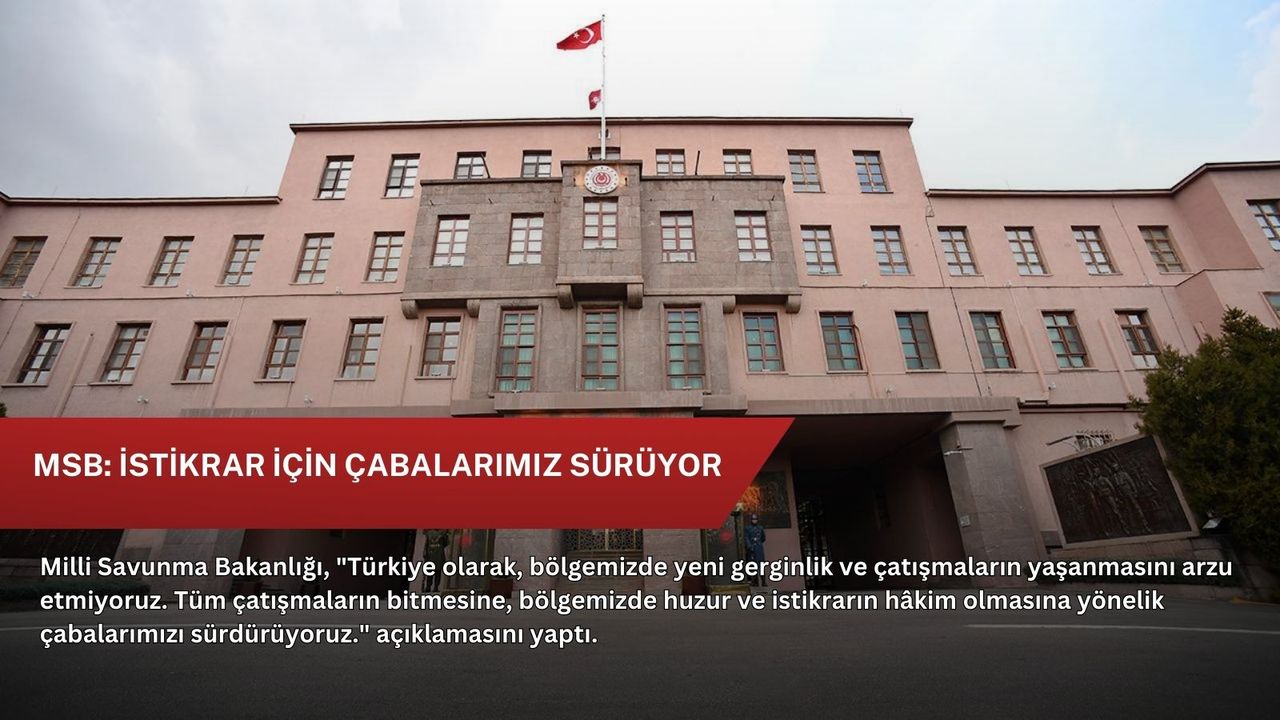 "Türkiye olarak, bölgemizde yeni gerginlik ve çatışmaların yaşanmasını arzu etmiyoruz. Tüm çatışmaların bitmesine, bölgemizde huzur ve istikrarın hâkim olmasına yönelik çabalarımızı sürdürüyoruz. Bunun yanı sıra, yaşanabilecek olumsuzluklara karşı devletimizin ilgili kurumları ile koordineli olarak gerekli tüm tedbirler alınmaktadır."