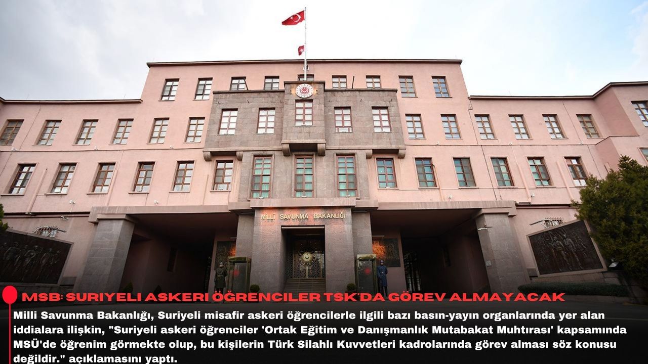 Bu kapsamda; Suriyeli askeri öğrenciler de "Ortak Eğitim ve Danışmanlık Mutabakat Muhtırası" kapsamında MSÜ’de öğrenim görmekte olup, bu kişilerin Türk Silahlı Kuvvetleri kadrolarında görev alması söz konusu değildir.