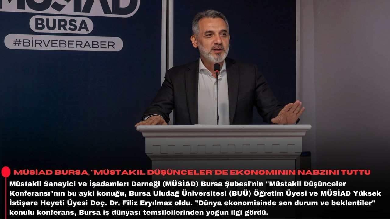 Programın açılışında konuşan MÜSİAD Bursa Şube Başkanı Alparslan Şenocak, Müstakil Düşünceler Konferansları’nın, MÜSİAD’ın ilke ve vizyonunu yansıtan önemli bir düşünce platformu olduğunu belirterek “Bu program serisini, iş dünyamızın üretim ve ticaretin yanı sıra; düşünce, vizyon ve stratejik bakış açısıyla da gelişmesi amacıyla başlattık.Bize göre ekonominin sürdürülebilirliği, düşünce ve strateji üretme kabiliyetiyle mümkündür.Bu kapsamda Müstakil Düşünceler Konferanslarımız, ortak aklın üretildiği, fikirlerin paylaşıldığı ve geleceğe yön verecek perspektiflerin şekillendiği bir platform haline geldi.” ifadelerini kullandı.