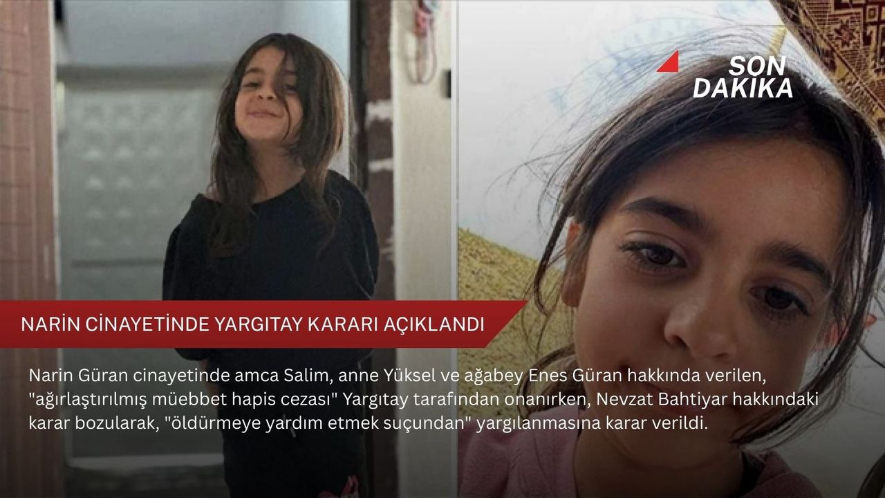 Yargıtay, Narin Güran cinayeti kapsamında amca, anne ve ağabey hakkında verilen ağırlaştırılmış müebbet hapis cezasını onadı.