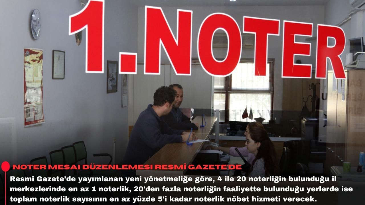 Adalet Bakanlığınca hazırlanan Noterlerin Tatil Gün ve Saatlerinde Çalışmasına İlişkin Usul ve Esaslar Hakkında Yönetmelik, Resmi Gazete'de yayımlandı.