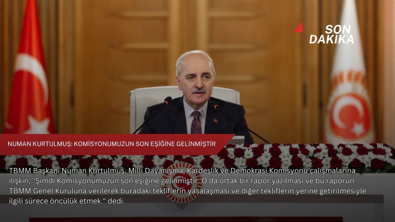 Kurtulmuş, komisyonun çalışmaları bakımından kritik eşikleri fevkalade büyük hassasiyetle ve özverili çalışmalarla aştıklarını belirterek, "Şimdi Komisyonumuzun son eşiğine gelinmiştir. O da ortak bir rapor yazılması ve bu raporun TBMM Genel Kuruluna verilerek buradaki tekliflerin yasalaşması ve diğer tekliflerin yerine getirilmesiyle ilgili sürece öncülük etmek. Bu çerçevede siyasi partilerimiz rapor hazırlama sürecinde, Komisyonda temsil edilen siyasi partilerimizin tamamı raporlarını Başkanlığımıza sunmuş, kendileri açısından önemli gördükleri konuları açık bir şekilde raporlarında ifade ederek partilerimizin her birisi için ayrı bir siyasi tutum belgesi olarak raporlar, Meclis Başkanlığına intikal edilmiştir." ifadesini kullandı.