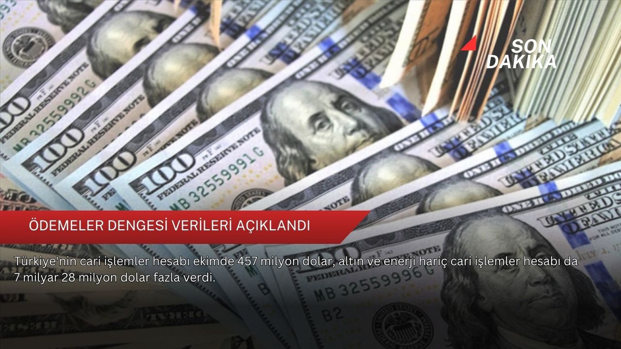 Türkiye Cumhuriyet Merkez Bankası (TCMB) tarafından açıklanan ödemeler dengesi verilerine göre, Ekim 2025'te cari işlemler hesabında 457 milyon dolar, altın ve enerji hariç cari işlemler hesabında da 7 milyar 28 milyon dolarlık fazla oluştu.