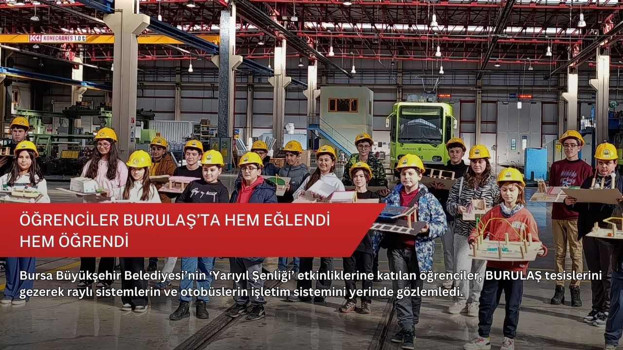 Bursa Büyükşehir Belediyesi iştiraki BURULAŞ tarafından ‘Yarıyıl Şenliği’ kapsamında 6,7,8 ve 9. sınıf öğrencilerine yönelik ‘Raydan Yola: BURULAŞ’ta Bir Gün’ etkinliği düzenlendi. Toplam 25 öğrencinin katıldığı program, eğlenceli drama oyunlarıyla başladı.